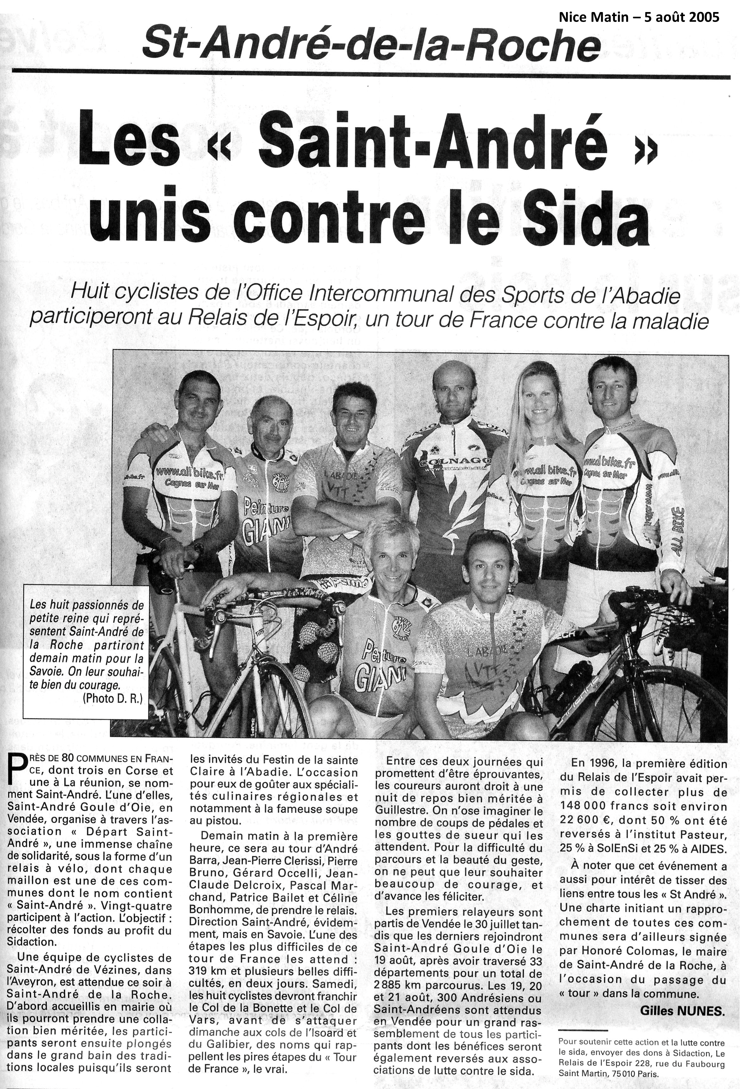 En août 1996, le relais relie 42 communes Saint André à travers la France. Cette action solidaire permet de récolter des fonds importants qui sont reversés à des associations œuvrant contre le VIH/SIDA.